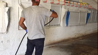 Chemicals applied to surfaces parallel to the floor, such as ceilings and undersides of equipment, are subject to direct gravity. This effect makes it difficult to hold, shortens the contact time. The shiny and smooth surface also affects adhesion negatively. Sanithol® continues to exist on different types and angles until rinsing.